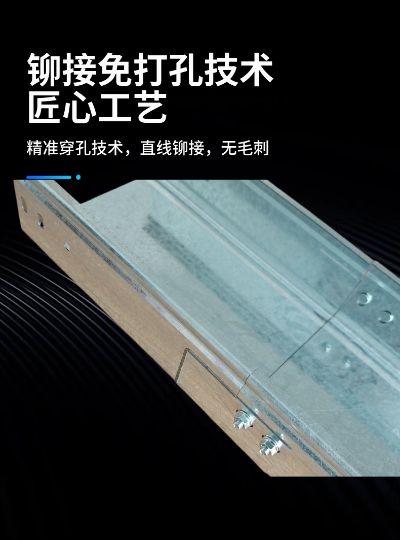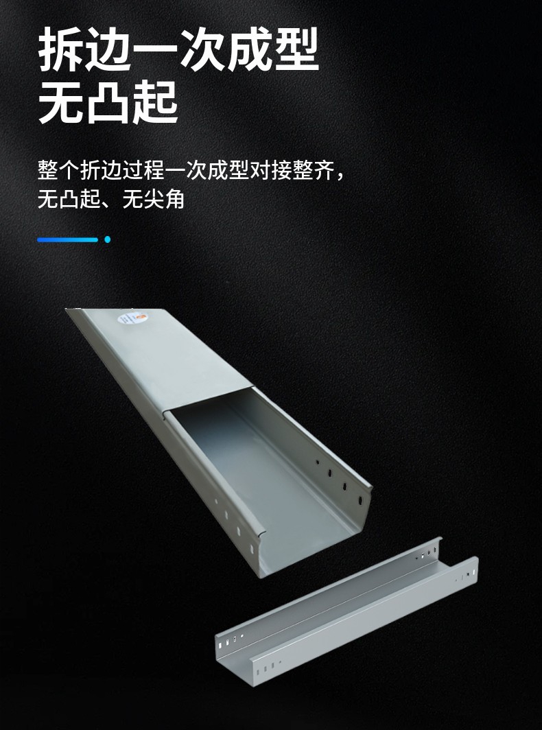 • 自体连接‌:无需卡扣、加强条等外部配件,两个桥架直段可通过自扣结构直接连接,实现“浑然一体”的流畅结构‌