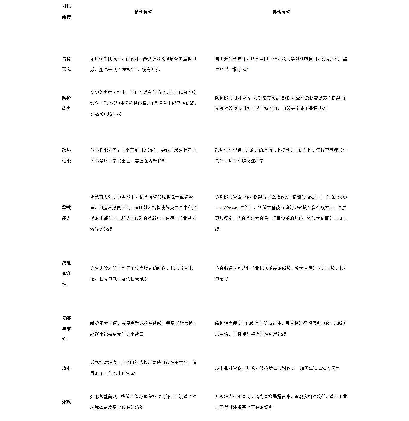 要是安装环境灰尘较多、发热量大,而且对外观要求不高(像发电厂、变电站、工业厂房等地方),则梯式桥架更为合适。