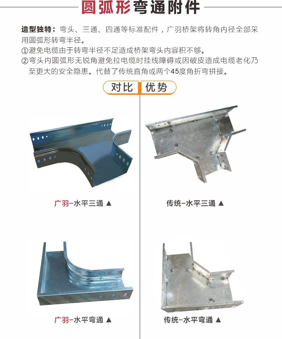 。弧形建筑:针对剧院、展览馆等特殊建筑结构,实现桥架与弧面的无缝贴合。